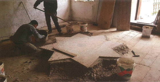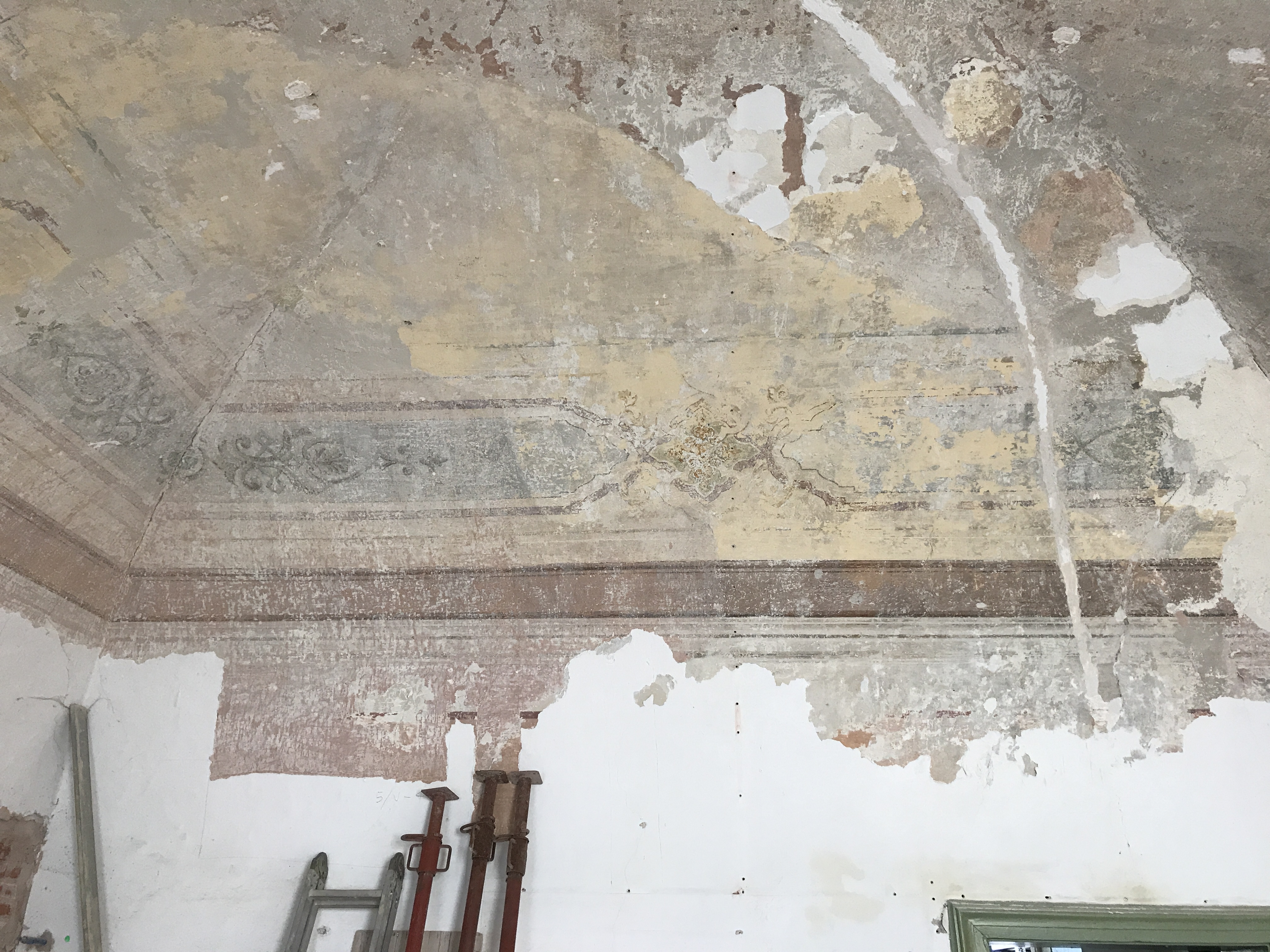 A parte la copertura, come detto rifatta in anni recenti, tutto il palazzo presentava gravi segni di dissesto strutturale: fessure profonde, solai lignei completamente imbarcati dal peso dei massetti sovrapposti incautamente nel tempo, o in alcuni casi completamente marcescenti. Gli intonaci interni ed esterni, che nel tempo si erano sovrapposti in molteplici stratificazioni, manifestavano anche loro pesanti segni di degrado. All’interno delle stanze più nobili del corpo principale, alcune grandi lacune lasciavano intravedere le ricche decorazioni che caratterizzavano quelli originali. Le pavimentazioni erano in alcuni casi ancora in antico terrazzo e in buono stato di conservazione, anche con decorazioni pregiate, mentre in alcuni casi erano state completamente demolite, e quindi del tutto inesistenti.
